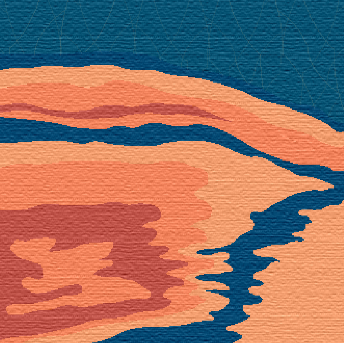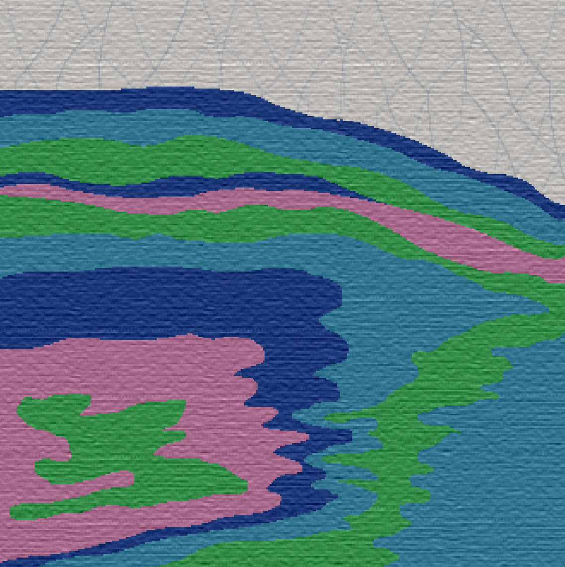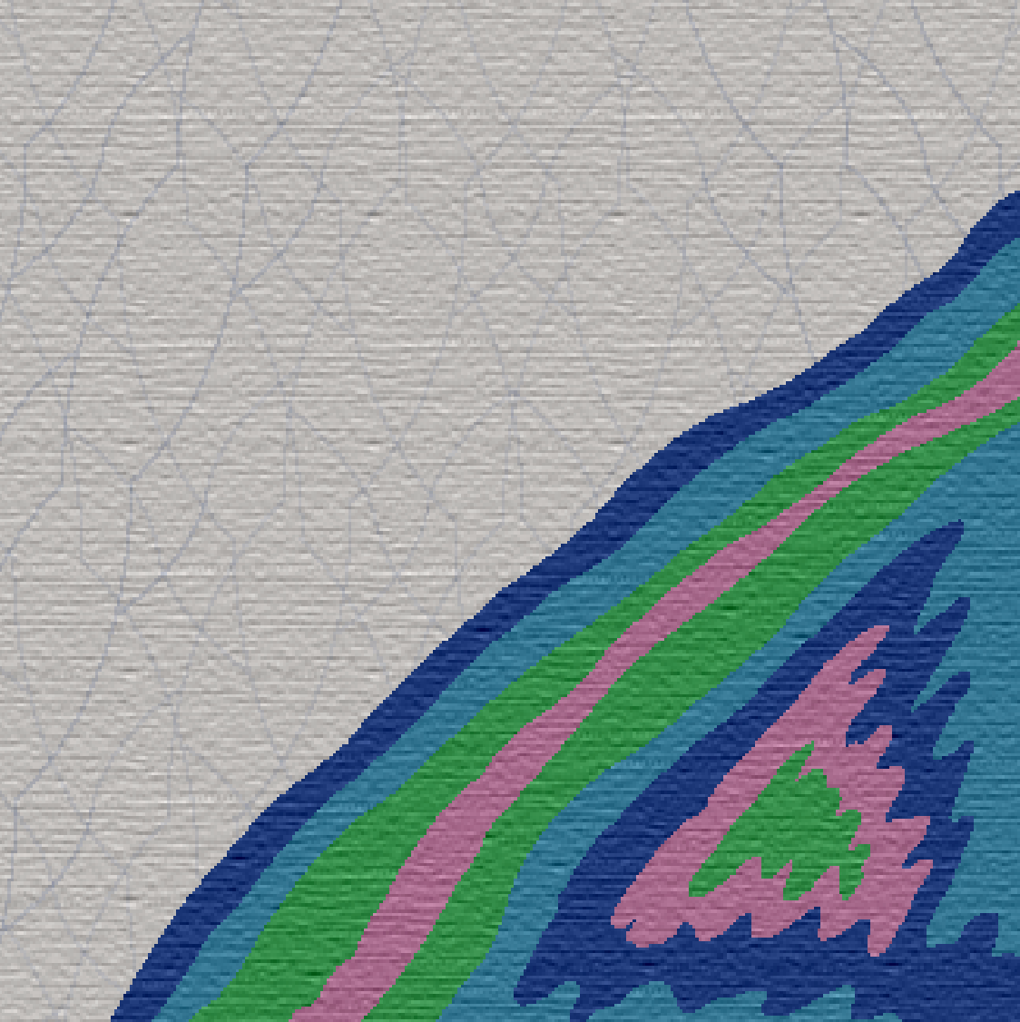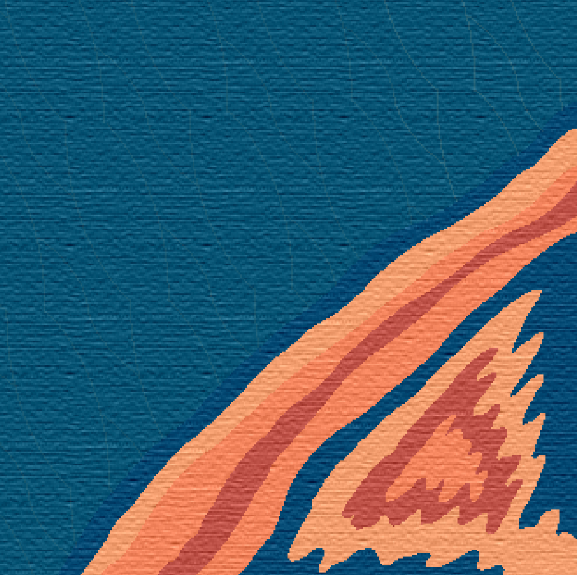 The Surface Collection carpet tile design is inspired by the critical issue of surface water pollution—specifically, oil spills and plastic waste. I developed patterns that mimic the fluid, trailing movement of oil as it spreads across the water’s surface. I incorporated abstract line work derived from recycled plastic water bottles, creating a subtle, textured background. The collection features four distinct color schemes, each reflecting the various visual effects oil creates when it disperses in water.