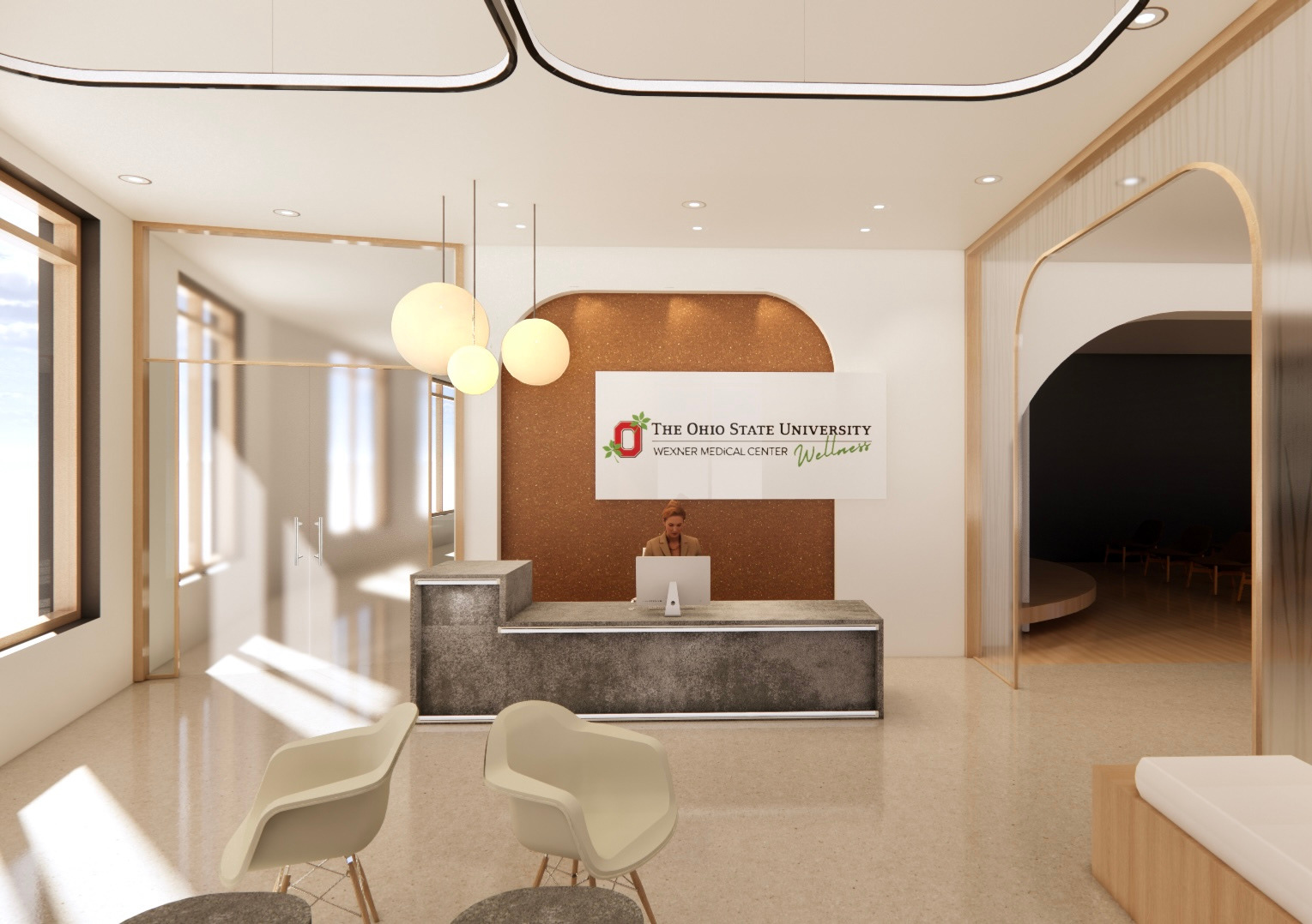 My group's boutique healthcare facility, The Ohio State Wexner Wellness Center, integrates the principles of biophilia into both general care and mental health and wellness practices. Alongside traditional medical spaces, our facility includes a multi-purpose wellness room designed for events, classes, yoga, and other enriching community activities. The environment is intended to promote holistic healing and rejuvenation, with a particular focus on the wellbeing of the aging population. Embracing the innate connection between humans and nature, our design incorporates biophilia and biomimicry to enhance sensory experiences while also prioritizing cleanliness and safety in our medical spaces.