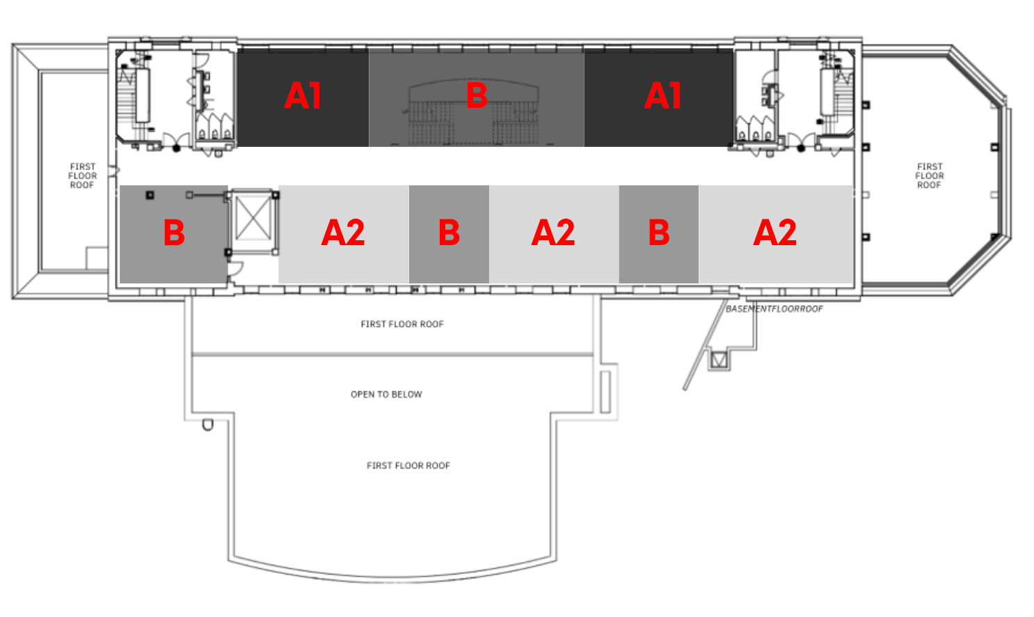 On every level, we incorporated an on-off, ABA spacial layout. This way, the same circulation patterns can be recognized as you travel up and through each floor.